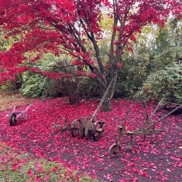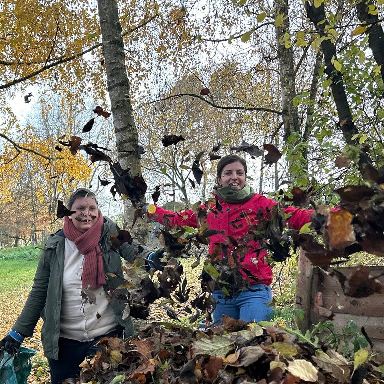 Ein Spaziergang durch den Garten des Merjehops lohnt sich immer. Meist gibt es Blumen, Kräuter und schöne Bäume zu bestaunen. Der Herbst ist die Zeit des Zierahorns. Wenn seine Blätter sich rötlich verfärben, ist das eine Augenweide. Und sobald die schöne Pracht fällt, ist eine der Aktivitäten in der Tagestruktur, das Laub zu rechen und, in Taschen zu packen und auf den Kompost zu bringen.
