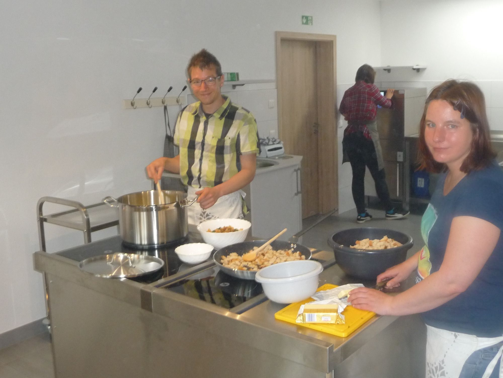 Die Zubereitung des gemeinsamen Mittagessens findet unter fachkundi-ger Anleitung und Begleitung statt.